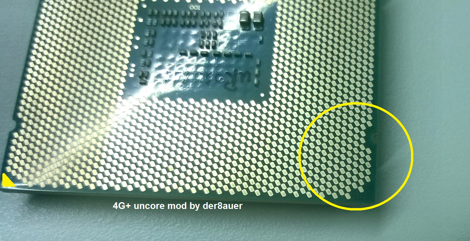 So in order to achive higher uncore clocks we have to modify some of the CPU voltages. This means we have to mod the CPU. Yes – talking about modding a USD $1,000 processor. There are two ways how to do this. The first way is the “lazy solution” and depending on your chip and board you should be able to run 4000-4200 MHz with this mod. For everything above you have to step up to solution two.