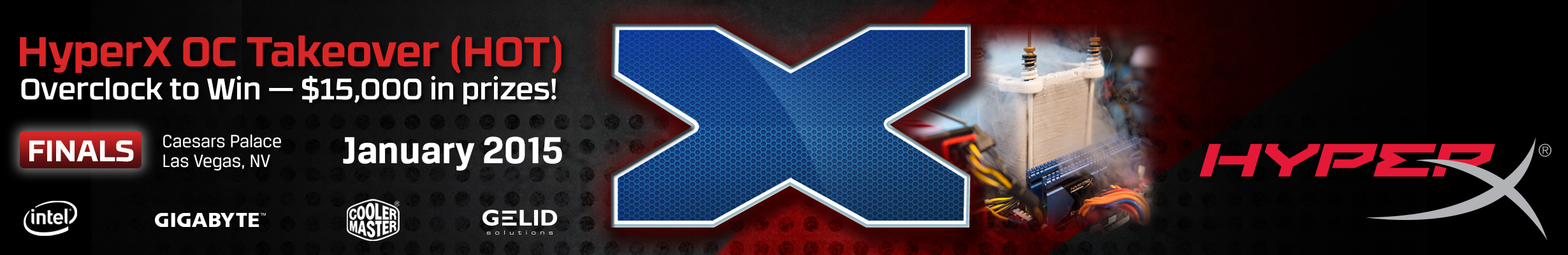 HyperX provides cash and hardware prizes for scoring records and hitting specific target scores. At the Caesar’s Palace there will be 20 seats available. Registrants may pair up with a fellow overclocker. To register, submit your best Kingston/HyperX Memory Clock score. Participants will be selected randomly. Note: this is a Bring Your Own Hardware event. HyperX may provide supporting hardware. The HyperX OC TakeOver CES 2015 Freestyle is open to all overclockers attending CES 2015.
