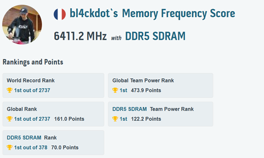 Bl4ckdot has reclaimed the memory frequency world record for France, achieving 12822 MT/s with G.SKILL Trident Z5 memory on an ASUS Republic of Gamers Maximus Z890 Apex motherboard, surpassing the previous record held by Saltycroissant from Canada and bringing the top spot back to his country.